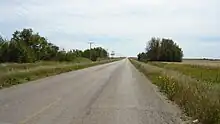 The southern portion of SK Hwy 35 from the Canada–United States border to Weyburn forms the initial segment of the CanAm Highway. The terrain is mixed prairie featuring rolling moraines and valleys.[4] North American Free Trade Agreement NAFTA super corridors are a concept of huge transportation corridors connecting Mexico, United States, and Canada. The CanAm highway was a concept begun in the 1920s.[5] This area has been subject to criticism as the entry way to Canada of this route.[6] "The CanAm matters so little to Saskatchewan highway planners that they've turned the most southern part of it within the province -- the Highway 35 link from Weyburn to the little U.S. border crossing at Oungre -- to gravel.[5] SK Hwy 35 achieved a dishonourable mention in the Canadian contest entitled 'Highways from Hell'.[7]