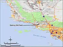 ![]() The Saticoy Oil Field in Ventura County, California. Other oil fields are shown in dark gray. | |