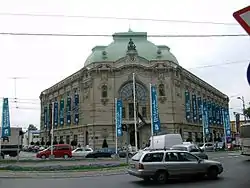Early 20th century was Savamala's golden age. Through neighborhood, the spirit of modern Europe was rapidly arriving in Belgrade.[26] In 1900, the first ice rink in Belgrade was built near the railway station.[27] The central street in the neighborhood was formed on 29 February 1904, when the streets of Savska and Moravska were transformed into one, named Karađorđeva, which stretched from the Sava Square and the railway station, to the Belgrade Fortress.[9][28] In order to straighten and extend the street, the city purchased the Paranos estate and demolished the "Paranos Han". Belgrade Cooperative purchased the estate of the Krsmanović brothers in order to built their own building,[28] so the construction of buildings and palaces along the Karađorđeva continued. Building of the Belgrade Cooperative was finished in 1907, the House of Đorđe Vučo in 1908, Hotel Bristol in 1912, Hotel Washington (later Hotel Wilson), etc.[28]
