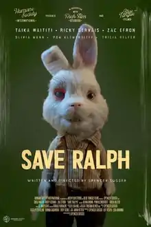 Save Ralph is a stop motion mockumentary animated short film written and directed by Spencer Susser. It stars Taika Waititi, Ricky Gervais, Zac Efron, Olivia Munn, Pom Klementieff, Tricia Helfer, and Rodrigo Santoro. The plot follows an interview with Ralph (Waititi), a rabbit who details his life as he is used for animal testing and the damages it has caused to his body. Produced by Jeff Vespa, the 4-minute short film was released by Humane Society International on April 6, 2021, to critical acclaim.
