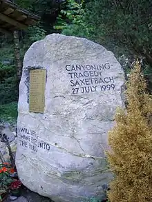 On 27 July 1999, an accident occurred in Saxetbach Gorge (a gorge close to the village of Saxeten) in which 21 young people from Australia, New Zealand, England, South Africa, and Switzerland died.