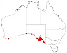 This species of scaevola grows on limestone, sand dunes and heath near the coast of south-eastern South Australia.[2]