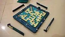 ![]() A game of English-language Scrabble in progress | |