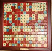 English-language editions of Scrabble contain 100 letter tiles, in the following distribution: