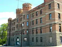 Scranton Armory is a historic National Guard armory located at Scranton, Lackawanna County, Pennsylvania. It was built in 1900, and is a four-story, 20 bays by 26 bays, brick and stone building executed in the Romanesque Revival style. The front facade features a central stone arch entrance flanked by crenellated towers.[2]