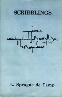 Scribblings is a 1972 collection of writings by science fiction and fantasy author L. Sprague de Camp to celebrate his appearance as Guest of Honor at Boskone IX, a convention sponsored by the New England Science Fiction Association. The Association served as publisher.[1][2]
