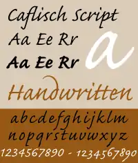 Script typefaces have evolved rapidly in the second half of the 20th century due to developments in technology and the end of widespread use of metal type. Historically, most signwriting on logos, displays and shop frontages did not use fonts but was rather custom-designed lettering created by signpainters and engravers.[6][7][8][9] As phototypesetting and then computers have made printing text at a range of sizes far easier than in the metal type period, it has become increasingly common for businesses to use type for logos and signs rather than hand-drawn lettering. In addition, phototypesetting made overlap of characters relatively simple, something very complicated to achieve in metal type. Matthew Carter has cited his 1966 Snell Roundhand typeface as deliberately designed to replicate a style of calligraphy hard to simulate in metal.[10][11] An additional development enabling more sophisticated script fonts has been the release of the OpenType format, which most fonts are now released in. This allows fonts to have a large character set, increasing the sophistication of design possible, and contextual insertion, in which characters that match one another are inserted into a document automatically, so fonts can convincingly mimic handwriting without the user having to choose the correct substitute characters manually.[12] Many modern script typefaces emulate the styles of hand-drawn lettering from different historical periods.