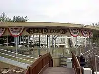 Sea Dragon is a junior wooden roller coaster located at the Columbus Zoo and Aquarium in Powell, Ohio. The ride is in the Rides At Adventure Cove section of the zoo. Built by Philadelphia Toboggan Coasters (PTC) under famed designer John C. Allen, the roller coaster opened in 1956 as Jet Flyer. It was one of three junior wooden coasters that Allen designed shortly after becoming president of PTC in 1954 – the other two were Flyer at Hunt's Pier and Valley Volcano at Angela Park. They were based on earlier designs developed by another legendary coaster architect Herbert Schmeck, who was Allen's mentor.[1] Following the dismantling of the other two coasters in the late 1980s, Sea Dragon became the oldest roller coaster from John Allen to remain in operation.[2][3]