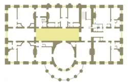 Floor plan of the White House second floor showing location of the Center Hall.
