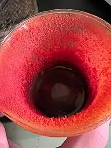 Selenium tetrabromide exists in two polymorphs, the trigonal, black α-SeBr4 and the monoclinic, orange-reddish β-SeBr4, both of which feature tetrameric cubane-like Se4Br16 units but differ in how they are arranged.[1] It dissolves in carbon disulfide, chloroform and ethyl bromide, but decomposes in water,[4] so that it produces selenous acid in wet air.