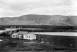 In the summer of 1891, due to the lobbying of Tryggvi Gunnarsson, a member of the Alþing, the first suspension bridge was built over the Ölfusá. That was a major breakthrough in Icelandic infrastructure. The current bridge was built in 1945 after the original structure collapsed. The cabin built to house workers constructing the bridge is the oldest building in Selfoss, and was named Tryggvaskáli in honor of Tryggvi for his efforts to construct the bridge. After the construction the building was used for travellers' accommodation and dining, until 1974. The building was also the site of Selfoss's first school, telephone exchange and bank.[1]