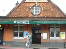Selhurst railway station is in the London Borough of Croydon in south London, 9 miles 31 chains (15.1 km) along the line from London Victoria.[3][4] It is operated by Southern, which also provides all the train services. The station is in Travelcard Zone 4.