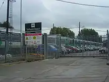 Selhurst Depot[11][12] is located to the east of Selhurst station, and occupies a triangle of land bordered on one side by the Victoria lines and on another by the London Bridge lines. It was built on the site of the former Croydon Common Athletic Ground, where Crystal Palace F.C. played Football League matches between 1920 and 1924.