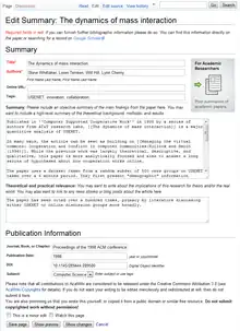 Some members of the academic community began urging the use of SMW on Wikipedia since it was first proposed.[20] In a 2006 paper, Max Völkel et al. wrote that in spite of Wikipedia's utility, "its contents are barely machine-interpretable. Structural knowledge, e.g. about how concepts are interrelated, can neither be formally stated nor automatically processed. Also the wealth of numerical data is only available as plain text and thus can not be processed by its actual meaning."[21]