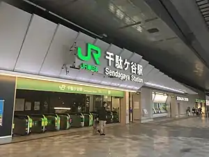 ![]() Sendagaya Station entrance in March 2022 | |||||||||||