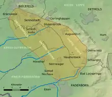 The Senne is a natural region in the Regierungsbezirk of Detmold, in the state of Nordrhein-Westfalen in west-central Germany. It lies to the west of the Teutoburger Forest, and has an area of approximately 210 km2.[1] It lies between the cities of Bielefeld to the north-west, Detmold to the north-east, and Paderborn to the south.