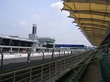 Sepang International Circuit grandstand, and its iconic umbrella shade.