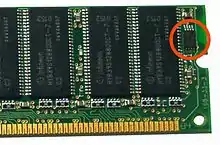 In computing, serial presence detect (SPD) is a standardized way to automatically access information about a memory module. Earlier 72-pin SIMMs included five pins that provided five bits of parallel presence detect (PPD) data, but the 168-pin DIMM standard changed to a serial presence detect to encode much more information.[1]
