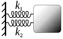 The following table gives formula for the spring that is equivalent to a system of two springs, in series or in parallel, whose spring constants are and .[1] (The compliance of a spring is the reciprocal of its spring constant.)