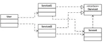 - The serviced classes (geometric objects from our example) don’t know about servant, but they implement the “IServiced” interface. The user class just calls the method of servant and passes serviced objects as parameters. This situation is shown on figure 1.