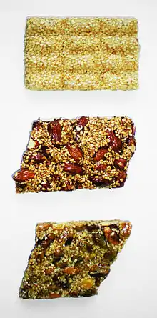 ![]() Three varieties of sesame seed candy. | |