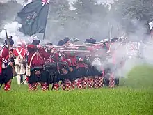 European warfare in the early modern period was characterised by the widespread adoption of firearms in combination with more traditional bladed weapons. Eighteenth-century European armies were built around units of massed infantry armed with smoothbore flintlock muskets and bayonets. Cavalrymen were equipped with sabres and pistols or carbines; light cavalry were used principally for reconnaissance, screening and tactical communications, while heavy cavalry were used as tactical reserves and deployed for shock attacks. Smoothbore artillery provided fire support and played the leading role in siege warfare.[26] Strategic warfare in this period centred around control of key fortifications positioned so as to command the surrounding regions and roads, with lengthy sieges a common feature of armed conflict. Decisive field battles were relatively rare.[27]