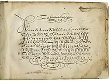William Shakespeare's handwriting is known from six surviving signatures, all of which appear on legal documents. It is believed by many scholars that the three pages of the handwritten manuscript of the play Sir Thomas More are also in William Shakespeare's handwriting.[1][2][3] This is based on many studies by a number of scholars that considered handwriting, spelling, vocabulary, literary aspects, and more.[4]