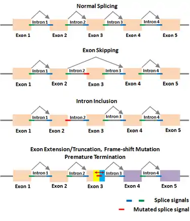 Numerous diseases have been caused by cryptic splice site mutations or usage of cryptic splice sites due to the mutations in authentic splice sites.[78][79][80][81][82]