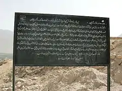 There are two inscriptions in the cave, one translates Shapur's own inscription on the Naqsh-e Rajab. The other is about the restoration of the statue by the army.[2]