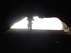 In the cave, on the fourth of five terraces, stands the statue of Shapur I, the second ruler of the Sasanid Empire. The statue was carved from one stalagmite.[1] The height of statue is 7 metres and its shoulders are 2 m wide, and its arms are 3 m long.[1]