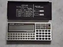 The Sharp PC-1350 is a small pocket computer manufactured by Sharp. The PC-1350 was introduced in 1984 and was used by engineers, and favored by programmers for its programming and graphical capabilities. It was superseded in 1987 by the PC-1360, which featured one additional RAM expansion port, improved BASIC, floppy disk capability, and a faster CPU.