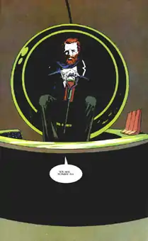 The likenesses of McGoohan and Leo McKern were featured for their characters’ returns. ITC Entertainment subjected the comic to a thorough evaluation. The contract required that each page of art and each complete issue be sent to the notoriously critical series creator, Patrick McGoohan, for his signed approval. McGoohan signed off on the material without comment and ITC later informed Motter, "He didn't hate it." McKern sent Motter a note saying he was flattered to be a "comic book villain" for the first time.[2]