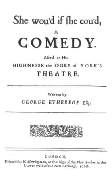 She Would If She Could is a 1668 comedy play by the English writer George Etherege. It was originally staged at the Lincoln's Inn Fields Theatre by the Duke's Company.