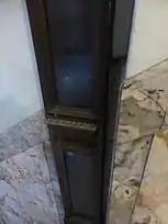 The building – consisting of seven storeys and a basement, serviced by three lifts and a mail chute – was opened by the Deputy Premier of Queensland and Lands Minister, Percy Pease, and Hugh M. Russell MLA, president of the Brisbane Chamber of Commerce.[8] The façade is from locally produced granite and Benedict stone (a mixture of cement and Brisbane tuff, supplied by the nearby Benedict Stone factory in Bowen Hills.[9] The Art Deco features of Shell House include stylised shell decoration on the exterior of the building, marble wall panelling and fluted pilasters in the foyer, an elegant staircase with wrought iron balustrade, an embellished plastered ceiling, and lifts with coloured glass doors with a chevron design.[10]