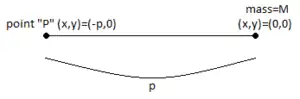 The gravitational field at a position called at on the x-axis due to a point of mass at the origin is