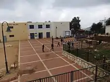 The town's main synagogue is designed as a replica of the Biblical Tabernacle.[20] It contains replicas and tributes to many of the utensils in the original Tabernacle of Shilo.[21]