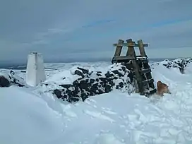 ![]() The trig point and former ladder stile at the summit of Shining Tor. | |