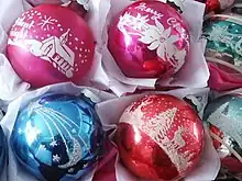 Shiny Brite ornaments were first manufactured at Corning's plant in Wellsboro, Pennsylvania, and continued there for many decades.[1] During its peak, Shiny Brite also had factories in New Jersey, located in the cities of Hoboken, Irvington, North Bergen, and West New York. The company's main office and showroom were located at 45 East 17th Street in New York city.