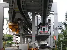 As of July 2016, the line is operated using a fleet of seven three-car aluminium-bodied 5000 series trainsets.[8] The 5000 series is equipped with a VVVF control device and regenerative brake which allows for smooth acceleration and deceleration. The VVVF inverter control reduces the need for inspection and maintenance because unlike a DC motor, there is no commutator brush or contact switch.[9]