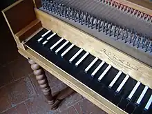 It can be seen that only two notes of the chromatic scale, C♯ and D♯, are missing. An analogous arrangement existed for keyboards with G instead of C at the bottom.
