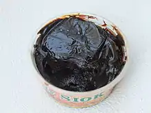 Haam ha (Chinese: 鹹蝦; Cantonese Yale: hàahm hā; pinyin: xiánxiā) alternatively spelled "hom ha", also known as har cheong (Chinese: 蝦醬; Cantonese Yale: hā jeung; pinyin: xiājiàng).[15] It is a finely ground shrimp paste popular in southeastern Chinese cooking, and a staple seasoning in many places Cantonese people settled. It is lighter in colour compared to shrimp pastes made farther south. It is considered indispensable in many pork, seafood, and vegetable stir fry dishes. The smell and flavor are very strong. A pearl-sized ball of haam ha is enough to season a stir fry for two people. The shrimp paste industry has historically been important in the Hong Kong region, and Hong Kong factories continue to ship haam ha to communities around the world.[16]