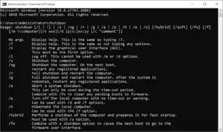 There is also a shutdown command that can be executed within a command shell window. shutdown.exe is the command-line shutdown application (located in %windir%\System32\shutdown.exe)[5] that can shut down the user's computer or another computer on the user's network. Different parameters allow different functions. More than one parameter can be used at a time for this command.[6]