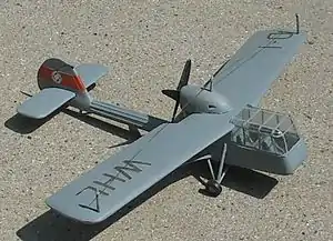 The Si 201 was a high-wing, braced monoplane with a tailwheel landing gear, powered by an Argus As 10C, mounted above the wing and driving a pusher propeller.[1] It had a boxy, fully glazed forward fuselage with room for a pilot and observer in tandem.