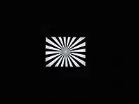 Under optical blur from defocus, a Siemens star (like any periodic pattern) gives rise to the phenomenon of spurious resolution[1][2] above the resolution limit, i.e. toward the center of the Siemens star. (Spurious resolution appears similar to aliasing, but it is a purely optical phenomenon, so it occurs without need of pixels.) This results in inverted polarity of the stripe pattern: black stripes appear in the place of white stripes and vice versa (and further polarity inversions occur further inward). (The illustration under Optical transfer function shows spurious resolution caused by blurring.) When looking at the Siemens star with slightly blurred vision, e.g., without spectacles or with defocus from staring, this is seen as a shimmering ring around the Siemens star's center that changes size with viewing distance.
