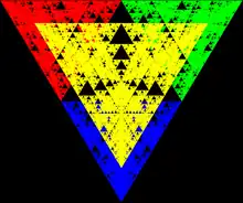 The Sierpinski triangle may be constructed from an equilateral triangle by repeated removal of triangular subsets: