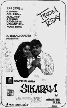 Sigaram (transl. Peak) is a 1991 Indian Tamil-language musical drama film directed by Ananthu and produced by Kavithalayaa Productions. The film stars S. P. Balasubrahmanyam, Rekha and Radha. It was released on 11 January 1991.