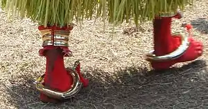 The silambu is a hollow anklet filled with beads that produce noise when the wearer moves or dances.[2] It may be worn on the ankle or the leg. When worn on the leg, it is termed kālchilambu in Tamil.[3]