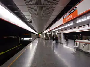 Simmering is a station on U3 of the Vienna U-Bahn.[1] Above the U-Bahn station is the Wien Simmering railway station, which is served by international and regional trains, and also by line S80 of the Vienna S-Bahn.
