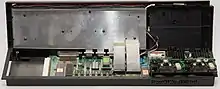 The result of a three-year collaboration between Sinclair Research, ICL and British Telecom, the One Per Desk adds a telephone handset at one end of the keyboard, and rudimentary Computer-Telephony Integration (CTI) software.[19] This machine interested a number of high-profile business customers, including certain divisions of the former UK Customs and Excise Department, but its success was generally limited. In the late 1980s they were used in bingo halls to allow a country-wide networked bingo game.[20]