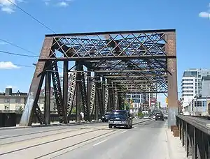 The Sir Isaac Brock Bridge is a steel Warren truss bridge in Toronto, Ontario, Canada. It lies along Bathurst Street over the railway tracks between Front Street and Fort York Boulevard. The bridge carries four lanes for motor vehicles with the centre lanes containing the streetcar tracks of the Toronto Transit Commission's 511 Bathurst streetcar route.